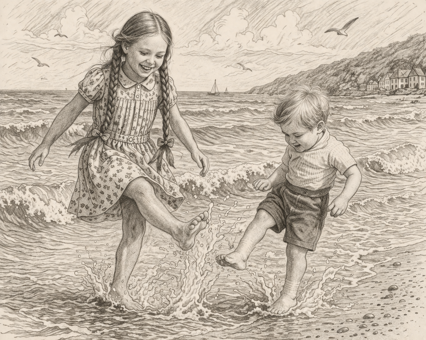 We ran to the sea together,